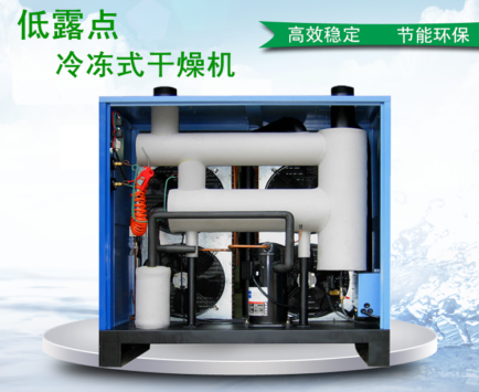Máy sấy lạnh là theo sự tương ứng giữa áp suất hơi bão hòa và nhiệt độ của nước, sử dụng thiết bị làm lạnh để làm mát khí nén đến nhiệt độ điểm sương nhất định, kết tủa nước chứa, thoát nước bằng cách tách soda và thoát nước điện, do đó làm cho khí nén khi